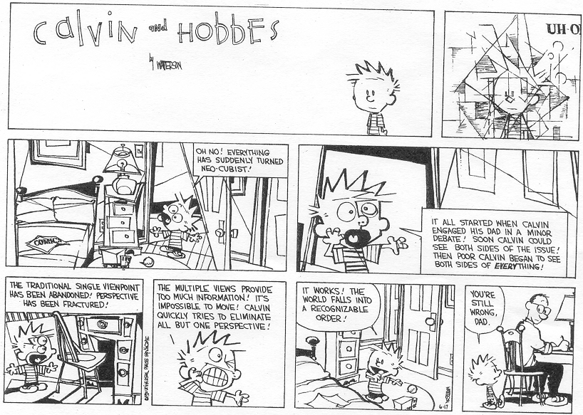 FIGURE 19.4 The difficult task of considering multiple perspectives. (Calvin and Hobbes copyright 1990 Wat terson. Dist. by Universal Press Syndicate. Reprinted with permission. All rights reserved.) |