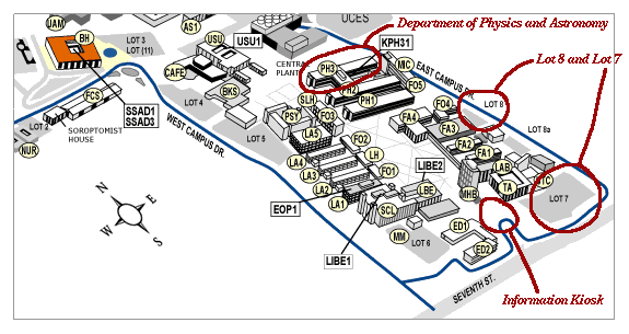 From West Campus Drive to Dept. of Physics and Astronomy: