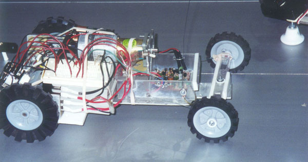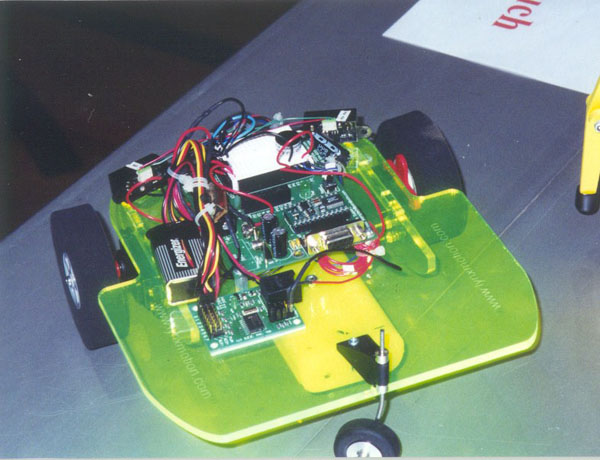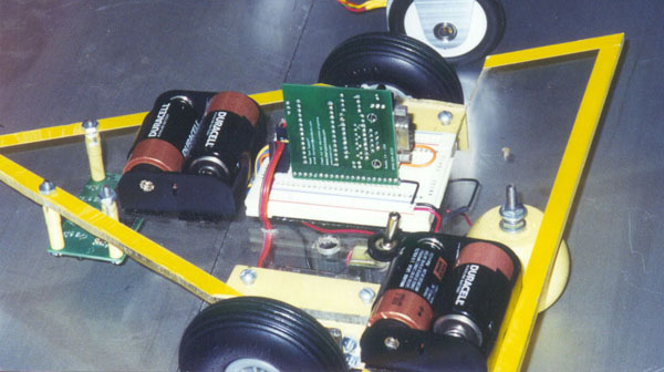 Our RSSC club in Fullerton used to collaborate with the SDRS robot club in San Diego, which does not exist anymore. In 2001, a Minesweeper contest was held (a sort of line-following contest). Here are some pictures from the archives: